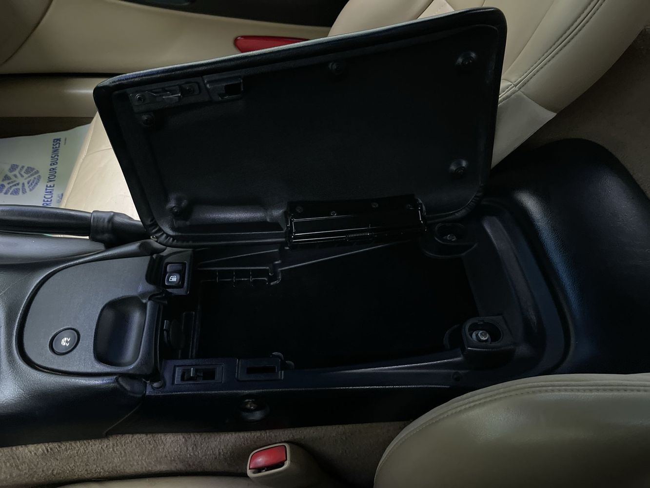 Floor console storage: Covered floor console storage