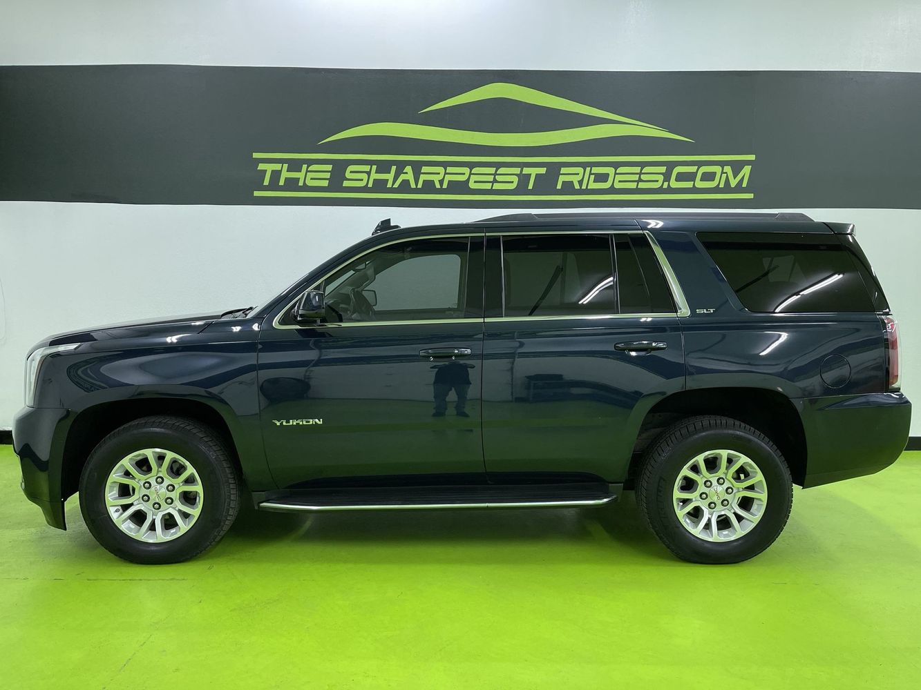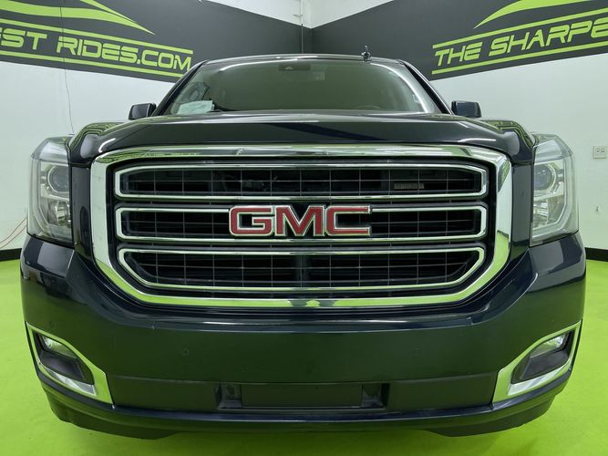 Experience the perfect blend of luxury and power with this 2017 GMC Yukon SLT, dressed in a stunning Dark Sapphire Blue Metallic exterior that exudes sophistication. With its robust EcoTec3 V8 engine delivering an impressive 355 horsepower and 383 lb-ft of torque, paired with a reliable automatic transmission and 4WD drivetrain, this SUV is ready to conquer any terrain while providing a smooth ride. The spacious interior boasts premium Jet Black leather seats that are heated for your comfort during chilly drives. Stay connected on the go with Bluetooth connectivity and never lose your way again thanks to the integrated navigation system.