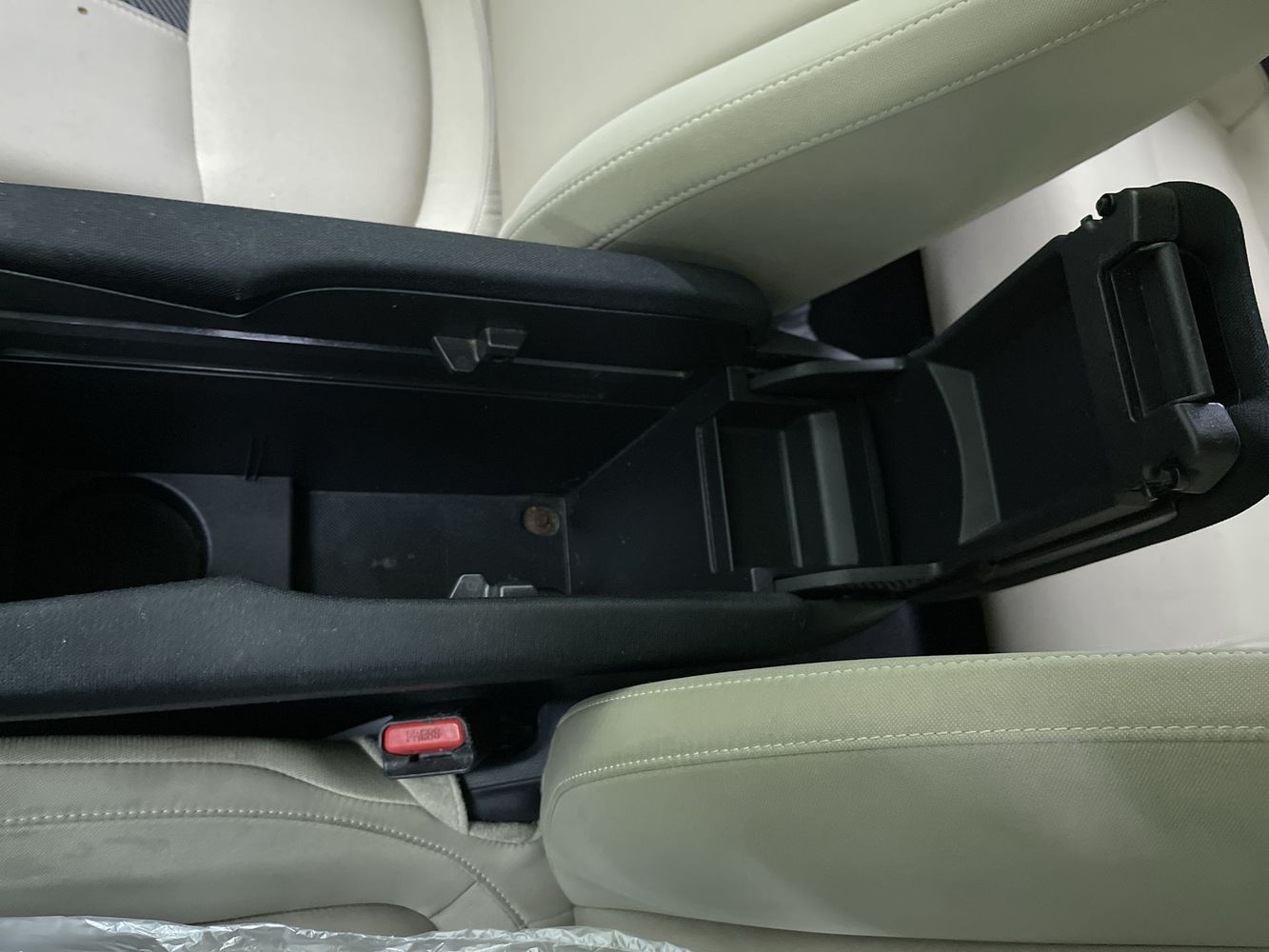 Floor console storage: Covered floor console storage