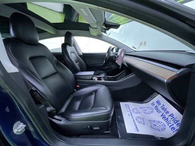 Experience the future of driving with this 2018 Tesla Model 3 Long Range, a stunning sedan that combines cutting-edge technology with unparalleled performance. Dressed in an eye-catching Deep Blue Metallic exterior and complemented by a sleek Black leather interior, this vehicle is as stylish as it is efficient. With its electric motor delivering an impressive 425 horsepower and all-wheel drive capability, you'll enjoy both power and precision on every journey. The automatic transmission ensures a smooth ride while advanced features like the navigation system, backup camera, Bluetooth connectivity, heated seats, and sunroof/moonroof enhance your driving experience.