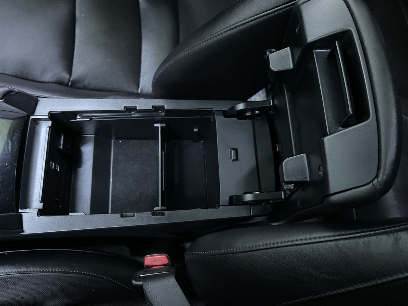 Floor console storage: Covered floor console storage