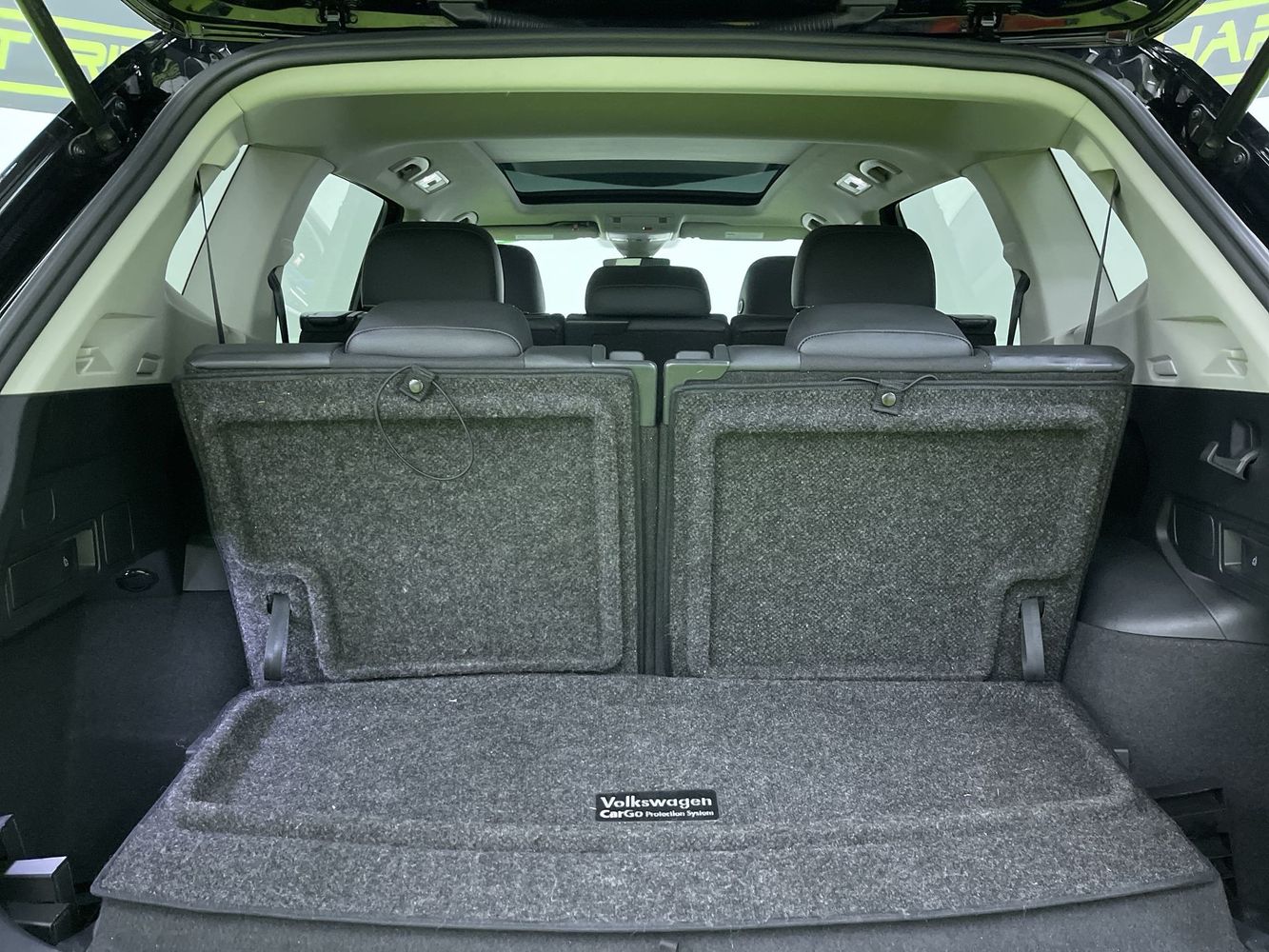 Third-row seatback upholstery: Carpet third-row seatback upholstery
