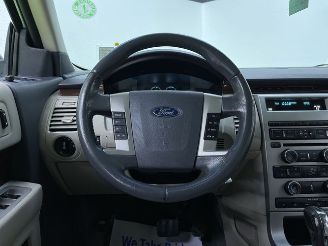 Experience the perfect blend of style, comfort, and reliability with this 2009 Ford Flex SEL Wagon. Dressed in a striking Dark Ink Blue Clearcoat Metallic exterior complemented by a sophisticated Medium Light Stone leather interior, this vehicle exudes elegance from every angle. Powered by a robust Duratec 3.5L V6 engine delivering an impressive 262 horsepower, you'll enjoy smooth performance whether cruising city streets or embarking on long road trips. The automatic transmission and FWD drivetrain ensure effortless handling for any driver.