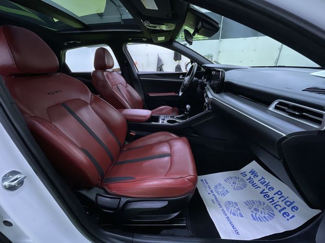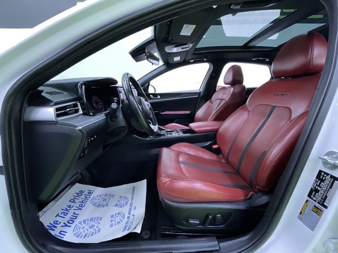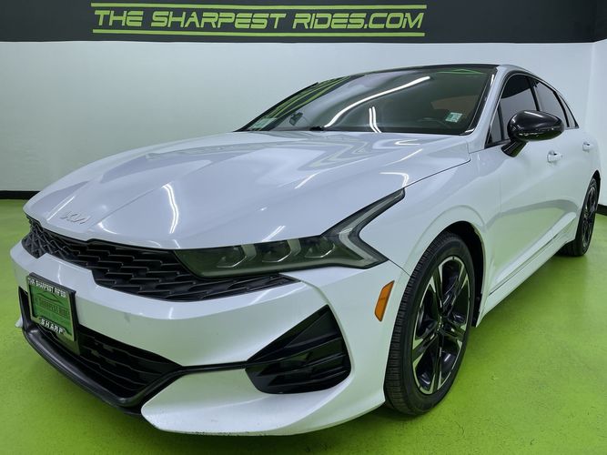 Experience the perfect blend of style, performance, and technology with this 2022 Kia K5 GT-Line. Dressed in a stunning Glacial White Pearl exterior complemented by a sleek black leather interior, this sedan exudes sophistication at every turn. With its powerful Gamma-II 1.6L 4-cylinder engine delivering an impressive 180 horsepower and all-wheel drive capability, you'll enjoy both thrilling drives and exceptional handling no matter the road conditions.