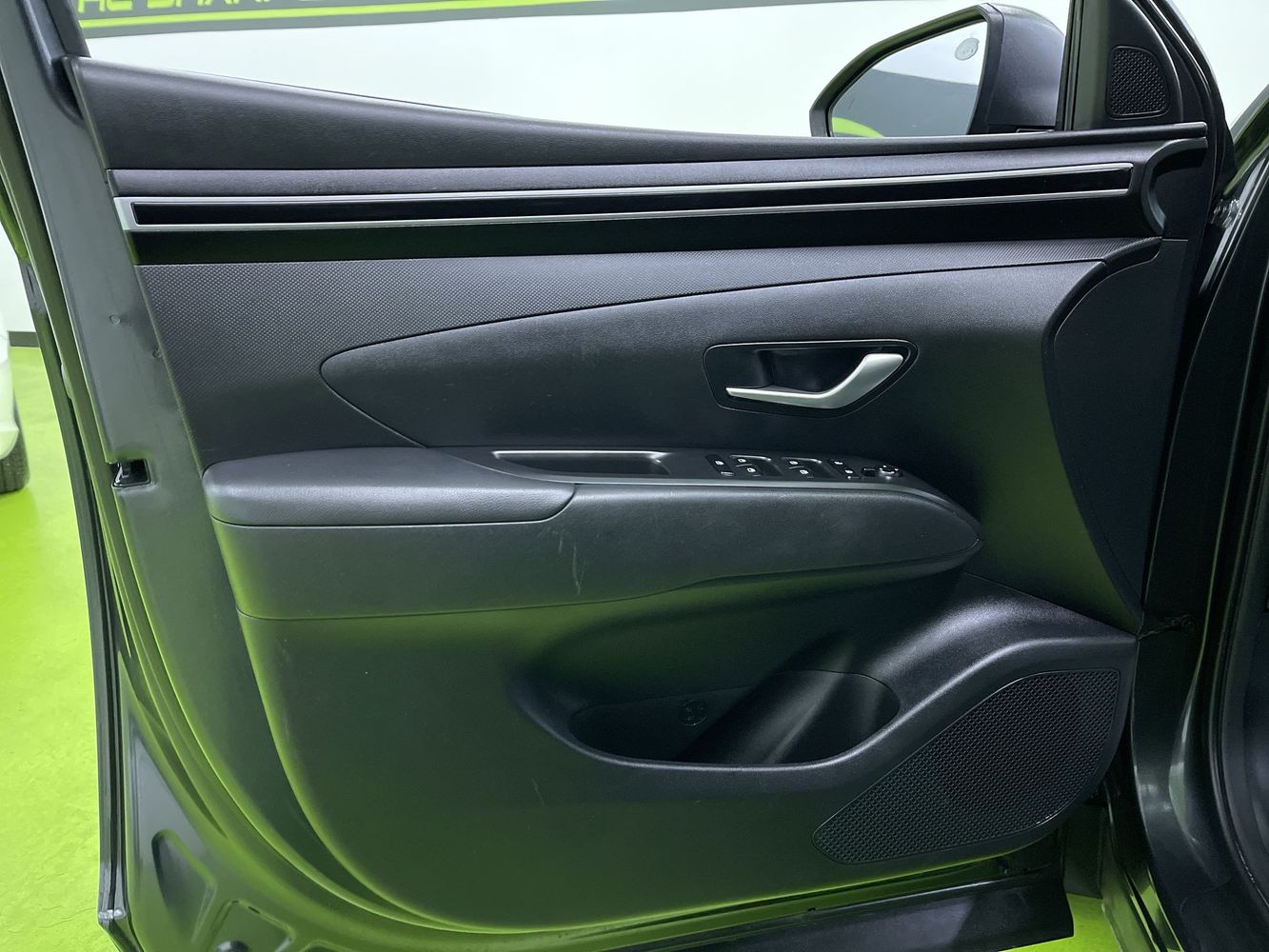 Door panel insert: Piano black and metal-look door panel insert