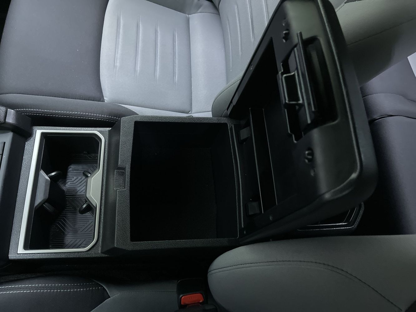 Floor console storage: Covered floor console storage